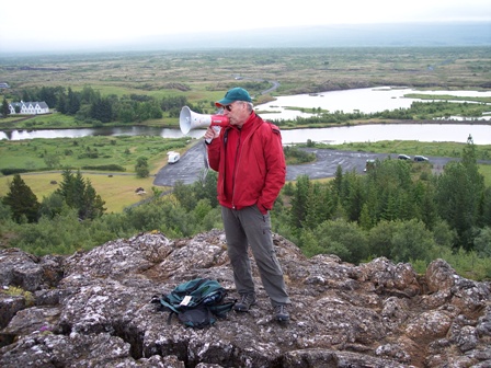 Dans le Cercle d’or, nous faisons un premier arrêt dans la plaine du parlement, où fut fondé en 930 le parlement islandais, le plus vieux du monde, et lieu du plus ancien parc national du pays. Tout en parcourant les plaques tectoniques – avec l’impression de marcher sur deux continents alternativement – j’ai discuté avec Eric Mattson, l’un de nos géologues, qui m’a expliqué qu’il y a sous l’eau des montagnes bien plus grandes que le mont Everest, et m’a parlé davantage des mouvements de la Terre sous nos pieds.